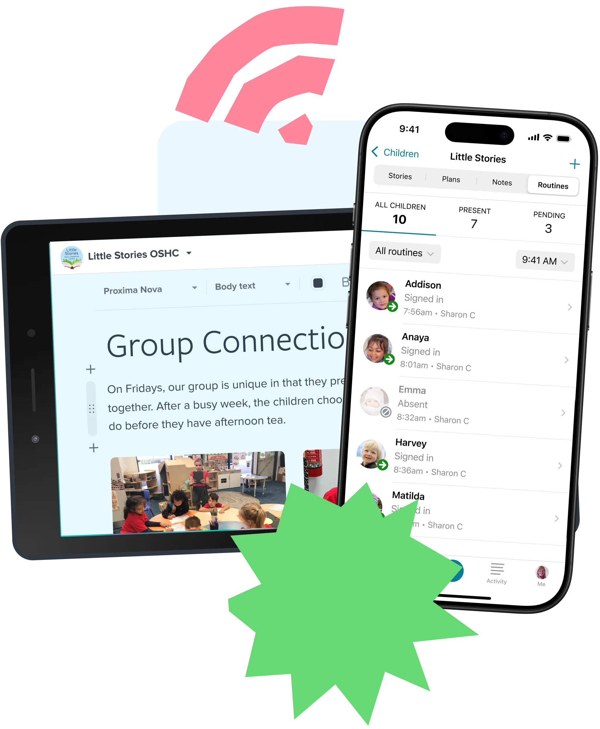 Capture, communicate and share children’s learning from anywhere with their community. Collaborate with team members, respond to families and save drafts to pick up later.